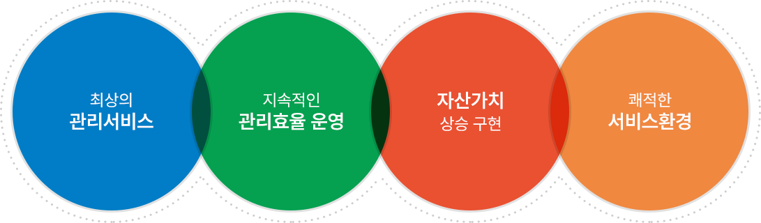 지금까지의 관행과 패러다임에서 벗어나 최상의 관리서비스와 지속적인 관리효율 운영으로 자산가치 상승 구현과 쾌적한 서비스환경으로 가꾸어 나갈 것을 약속 드립니다.