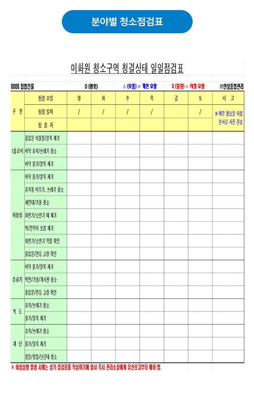 청소범위를 세밀히하고 매뉴얼에 의거 업무토록 유도